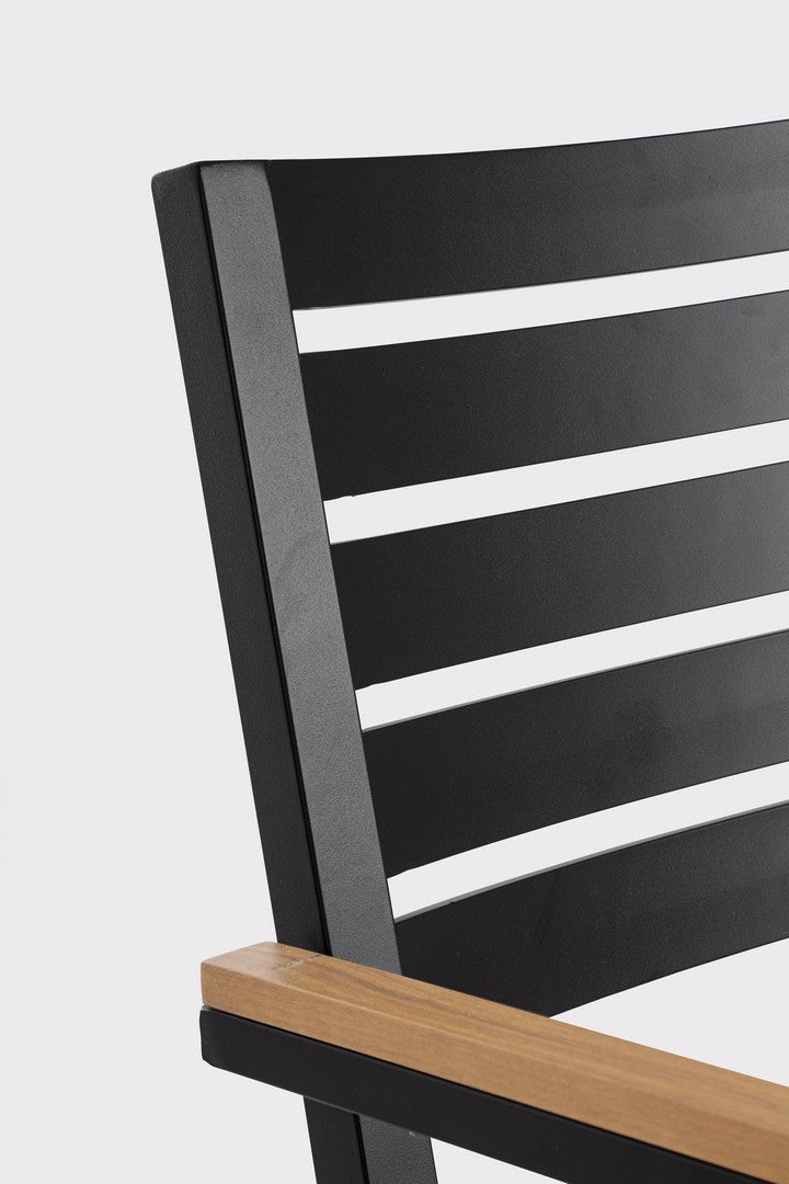 Accoudoirs avec inserts en aluminium avec peinture effet bois : Les accoudoirs sont dotés d'inserts en aluminium avec un traitement de peinture donnant un effet bois. Cette finition ajoute un aspect naturel et chaleureux, tout en conservant la légèreté et la résistance de l'aluminium.