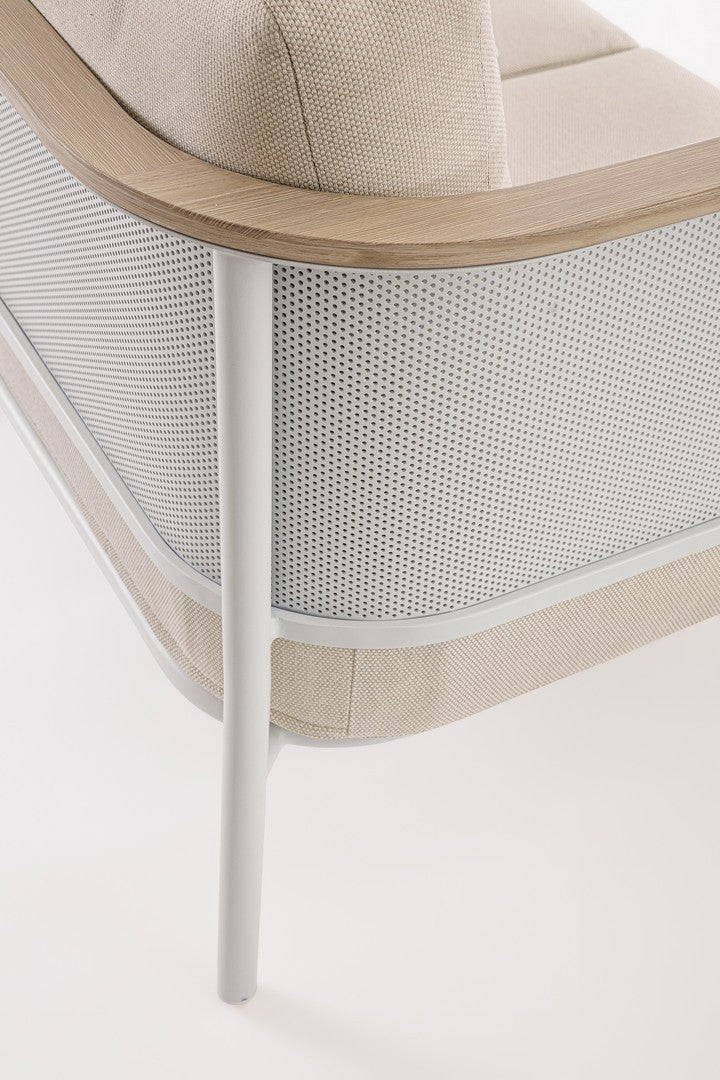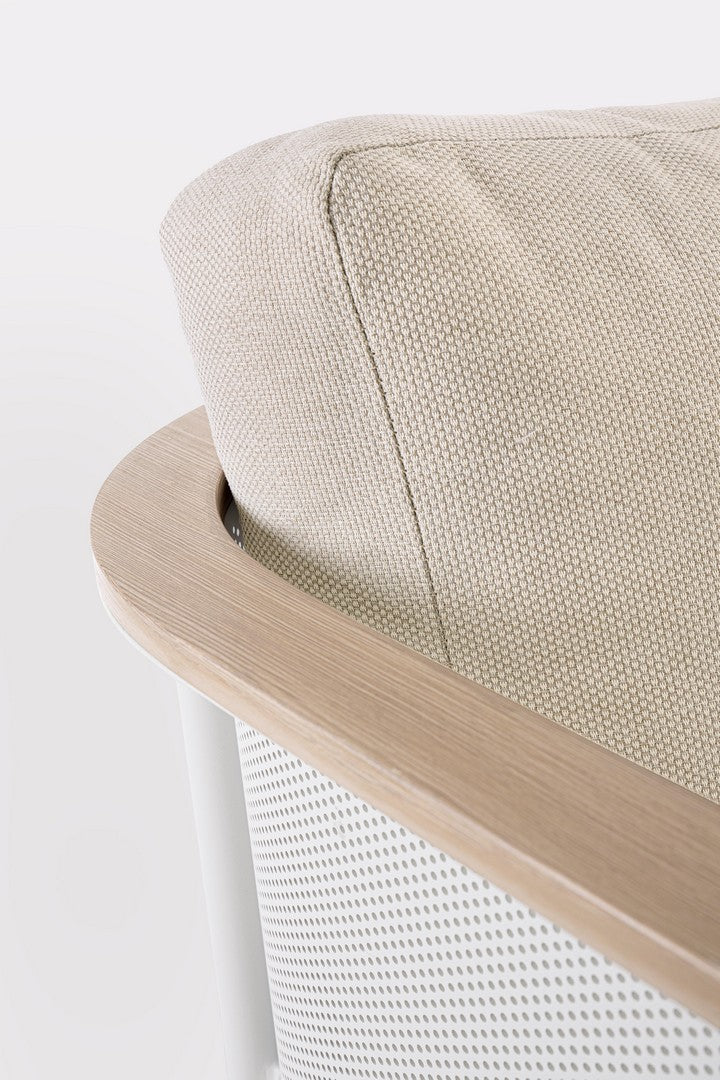 - Coussins : Recouverts de tissu hydrofuge OLEFIN, ce matériau est réputé pour sa résistance à l'humidité, aux taches, aux rayons UV et à la décoloration, assurant une longévité prolongée et un entretien facile, même en extérieur.